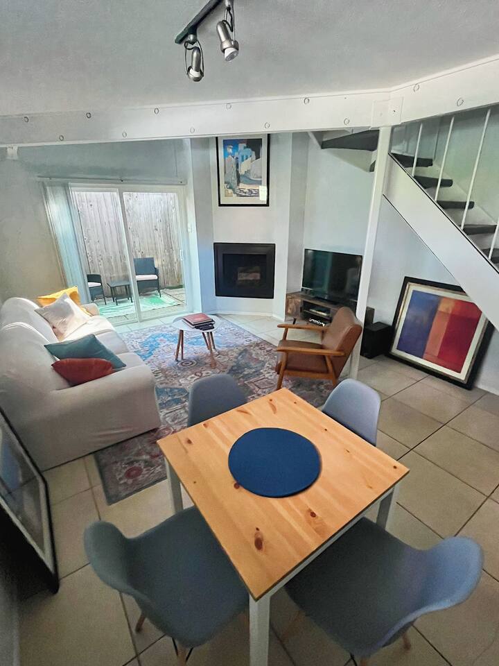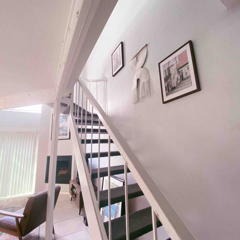The home is equipped with a Chromecast, so you can stream using your own login. The space sleeps 3 comfortably, with a queen-sized bed upstairs and an inflatable mattress stored in a wicker basket downstairs. We occasionally stay next door, so if you need any assistance, feel free to reach out.
